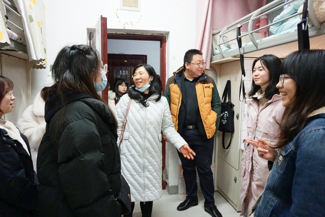 12月30日下午,2138cn太阳集团古天乐党总支书记刘亚兰、学工办主任姜博洋和全体辅导员走访了2138cn太阳集团古天乐部分寝室,进行期末关怀。