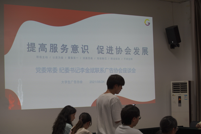 李金斌书记认真听取了张春蕾老师的总结和张凤同学的汇报,并对广告协会一年来的工作成果表示肯定。针对其中的问题,李金斌书记提出了相应的意见,并鼓励大家要迎难而上,积极进取,勇于担当。最后,李金斌书记期望广告协会能够在建党一百周年的关键时期发扬传媒学子的正向宣传作用,注重政治意识,利用学校、学院资源,融合发展,带领广告协会发展得更好。
