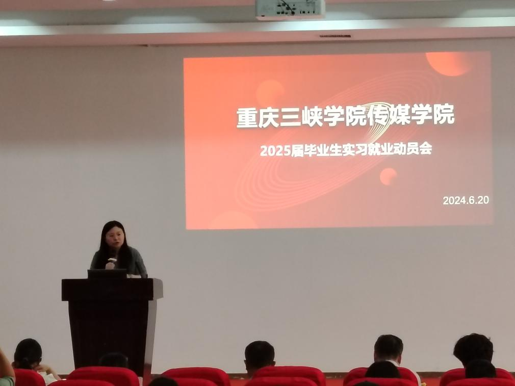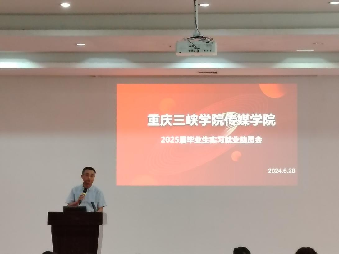 为全面落实学校第五次本科生就业推进会工作精神,提前部署与谋划2025届毕业生“实习+就业”一体化工作,扎实开展实习实训,增强学生就业竞争能力,6月20日,2138cn太阳集团古天乐在明辨楼2栋104会议室召开2025届毕业生实习就业动员大会。2138cn太阳集团古天乐院长韩红宇、党总支书记孙国英、副院长陈振华以及各系主任、学工办主任、实习指导教师、辅导员和2025届全体毕业生参加会议,并邀请了重庆迅鲸文化传播有限公司总经理王成刚为学生做就业培训。此次会议由陈振华主持,共分为三个阶段。