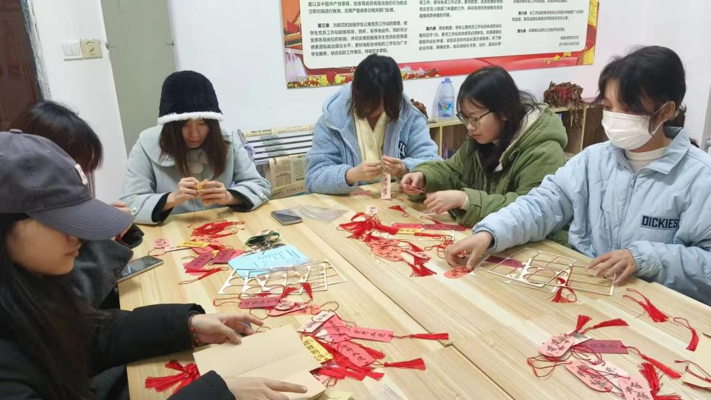 下午,支部同志早早来到学生公寓党员工作站,一起动手制作了精美的书签,并在书签上写下了励志的话语、温暖的祝福。晚上,大家走进学生社区,深入考研学子宿舍,将这些承载着祝福和鼓励的书签送了出去为考研学子们加油助威。小小书签寄托着学院党员师生的无限祝福,为考研学子们带去了鼓励与支持,让他们在“研”途中处处皆暖。