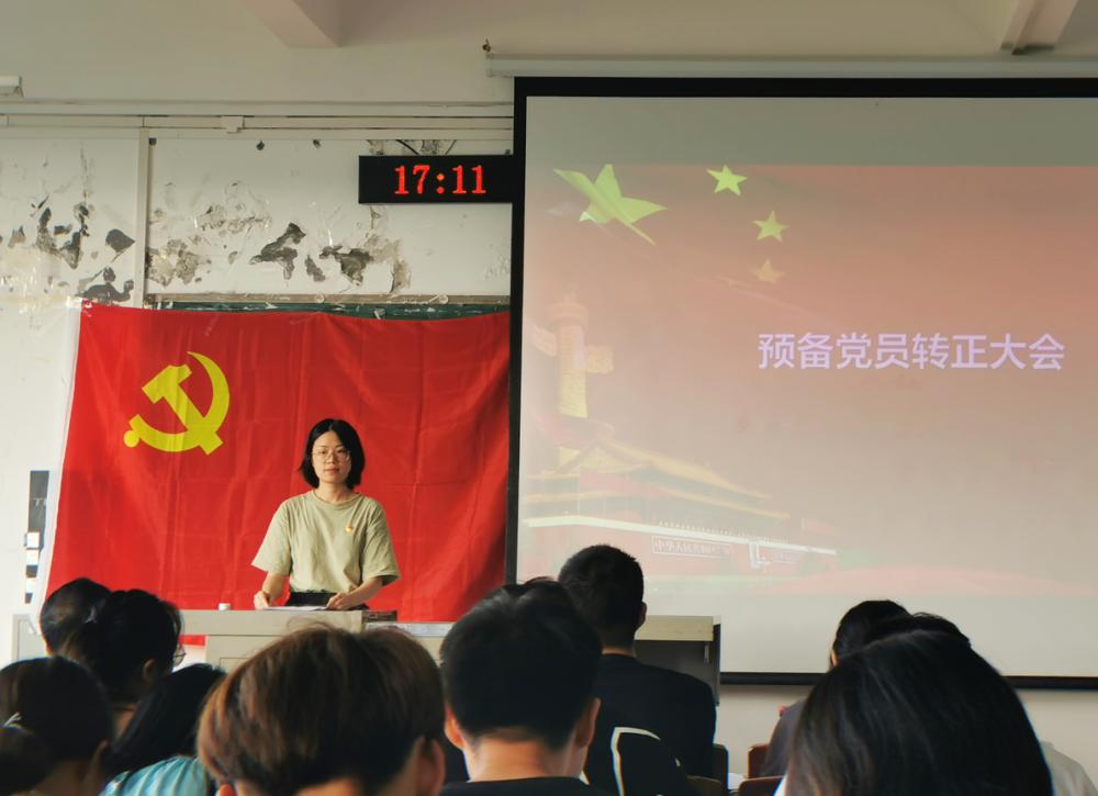 6月15日下午4:00,2138cn太阳集团古天乐学生党支部在明辨楼1栋421教室召开了预备党员转正大会。党总支书记刘亚兰,学生党支部书记肖潇,担任预备党员介绍人的教师党员,学生党支部委员及支部全体学生党员参加了此次会议。