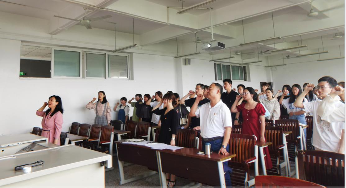 会后,全体党员在党总支书记刘亚兰同志的带领下进行入党宣誓。全体党员重温入党誓词,高亢激昂的声音久久回荡在教室里,彰显着对党的崇高敬意。