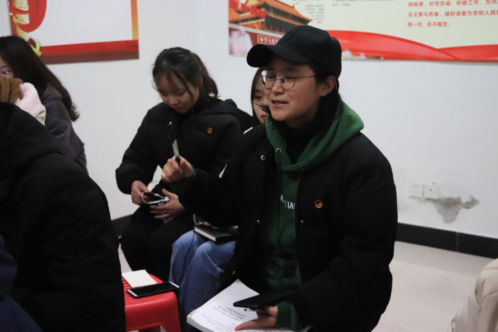 在学习活动中,全体党员在喻婷同志的带领下,以“诵读接力”的方式对《习近平“不忘初心、牢记使命”论述摘编》的第十、十一章进行学习。之后,大家互相讨论,多名党员同志主动发表了自己对党日活动学习的感受和思想认识,其中朱绍岽同志向大家分享了自己的思想收获,他说,党的先进性应该从自身做起,向人民群众展现自己的先进性就要为群众做实事、做好事。喻婷同志也说到,等我们到了中年时期也要多回想起学生时期入党时的激情和决心,不忘初心,不受钱权诱惑,坚定理想信念,保持党的纯洁性。