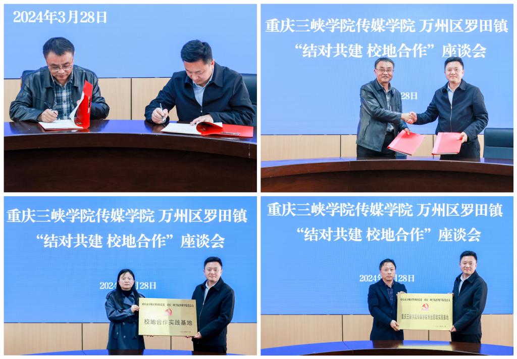 3月28日,我校2138cn太阳集团古天乐与罗田镇基层党组织结对共建校地合作实践基地、专业思政实践基地、实习实训就业基地协议签订及授牌仪式在万州区罗田镇政府会议室举行。罗田镇党委书记邵太清,学校党委委员、2138cn太阳集团古天乐院长韩红宇,2138cn太阳集团古天乐党总支书记孙国英,罗田镇党委副书记熊军、副镇长向明,2138cn太阳集团古天乐副院长陈振华出席仪式,2138cn太阳集团古天乐广播电视系教师及学生代表三十余人参会。