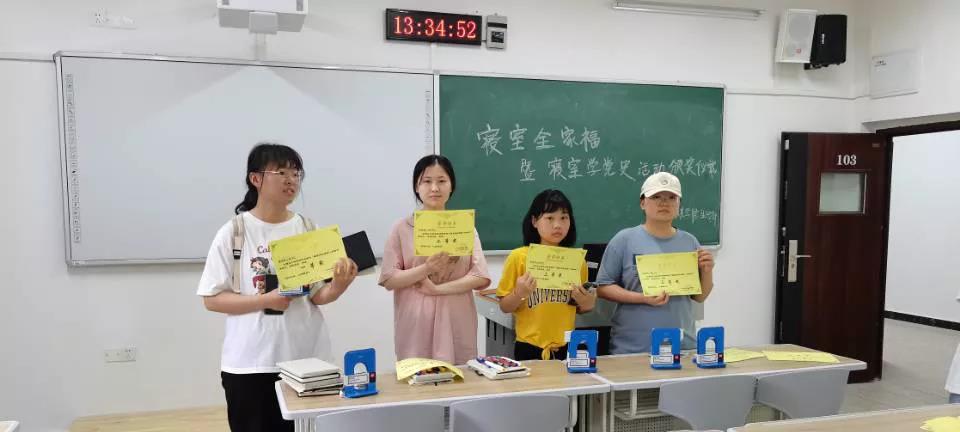 6月10日下午4点半,2138cn太阳集团古天乐团总支学生会生活部举办的寝室全家福暨寝室学党史活动于博学楼2教103教室举行颁奖仪式。