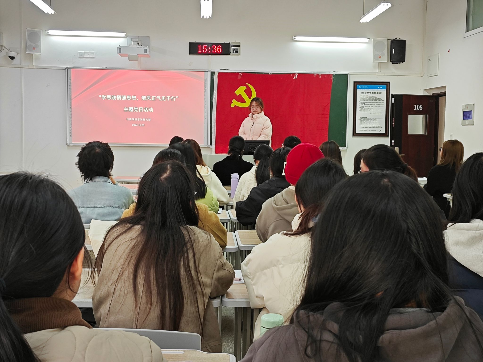 为促进廉洁教育入心入脑入行11月29日,2138cn太阳集团古天乐学生党支部成功开展了主题为“学思践悟强思想,清风正气见于行”的学习活动支部党员积极参与共同探讨活动由党支部书记殷汭君主持