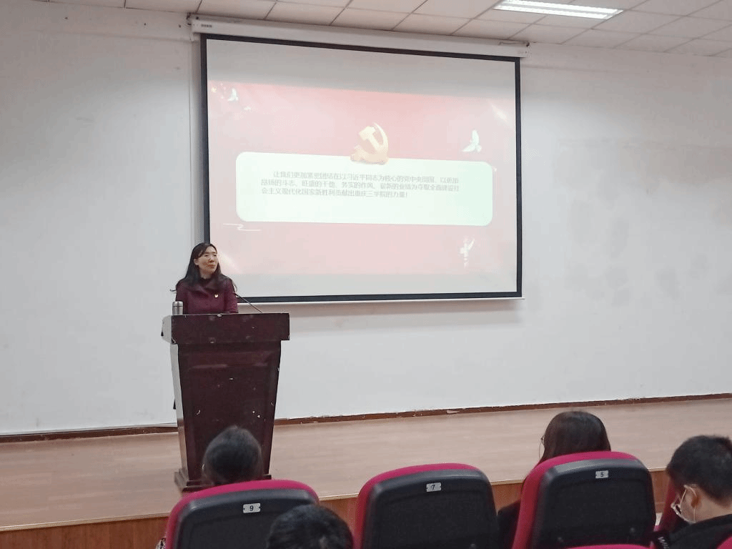 12月1日下午2时30分,2138cn太阳集团古天乐第一场十九届五中全会精神宣讲会在明辨楼2栋106举行。学院党总支书记刘亚兰担任宣讲人,全院107名学生党员及入党积极分子参加了宣讲会。