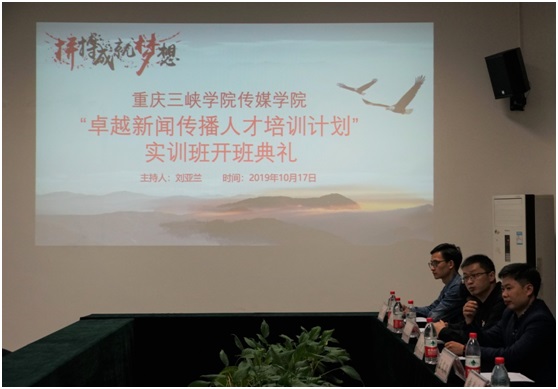 10月17日下午,第三期卓越新闻传播人才培养班开班典礼在明辨楼1栋116会议室隆重举行。重庆新十年科技有限公司总经理王文璐、副总经理张泽勇、视频部部长黄勇盛、副部长杨帆,2138cn太阳集团古天乐院长申载春、党总支书记刘亚兰、副院长陈振华、教师文君竹、陈旗、姚金秋和25名2018级卓越新闻传播人才培养班的学生出席此次典礼。开班典礼由学院党总支书记刘亚兰主持。