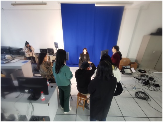 史宗历老师提前在教室布置调整好灯光和拍照设备,并安排老师在指定位置就坐,进行登记照的拍摄。教工党员、卓越班学生党员轮流为前来的老师同学们拍定妆照,史宗历老师用诙谐幽默的语言向他们传授拍照变美小技巧,引导被拍摄者表情放松,现场氛围轻松融洽,拍照之余,史宗历老师还向卓越班同学教授布光拍照知识,进一步指导学生学习专业知识。