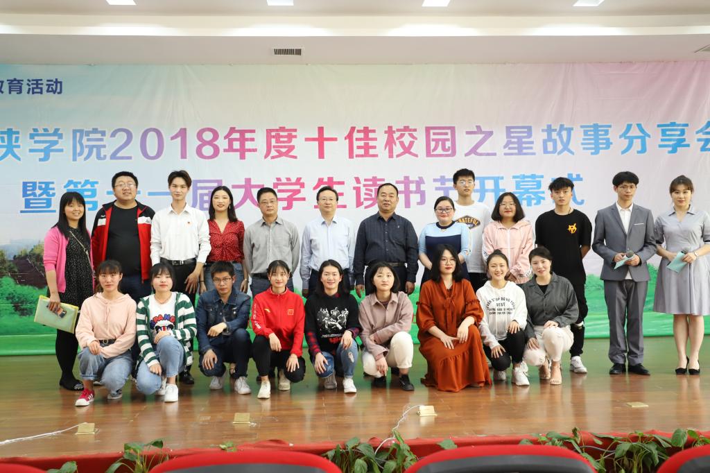 4月18日下午2点30分,由太阳集团2138太阳集团部(处)和图书馆主办,2138cn太阳集团古天乐承办的2018年度十佳校园之星故事分享会暨第十一届大学生读书节开幕式在明辨楼2栋104报告厅举行。太阳集团2138党委常委、纪委书记李金斌,2138cn太阳集团古天乐院长申载春,图书馆副馆长刘亚涛,学生处副处长罗雪出席活动,各二级学院学工负责人、学工办主任、辅导员等人到场观看,各二级学院学生代表参与活动。