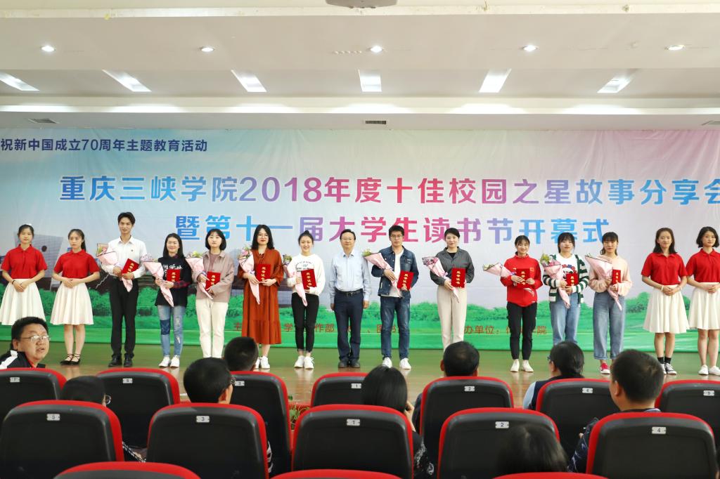 最后,李金斌在讲话中鼓励大学生们积极参与课外阅读活动,多读书,读好书,让读书成为一个习惯;并代表学校向获得“校园十佳之星”的集体和个人表示了真切的祝贺。同时提出了三点希望:见贤思齐,向身边的榜样学习;品读经典,促进书香校园;争做新时代的优秀三峡学子。