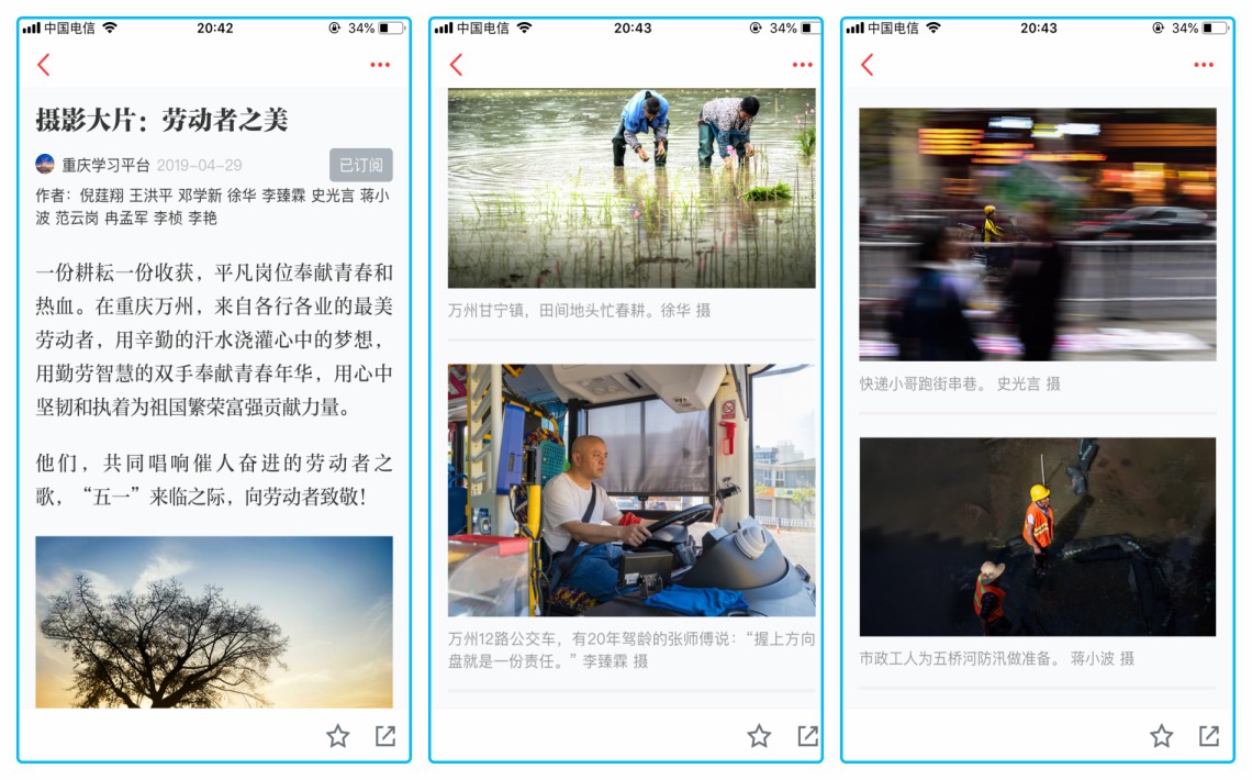 2016级广告学1班蒋小波、2017级网络与新媒体1班倪莛翔和李臻霖三位同学,用他们手中的相机,抓拍下一幕幕精彩的瞬间,从不同视角、用不同手法发现展示劳动之美,谱写了一曲“劳动者之歌”。