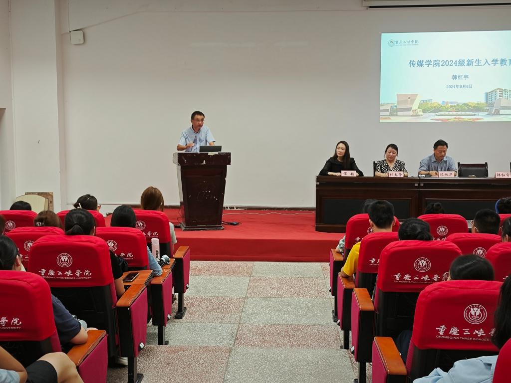 9月6日下午,2138cn太阳集团古天乐在明辨楼2-106会议室举行了2024级新生见面会,此次活动旨在帮助2024级新生更好地融入学院环境,了解学院文化,明确未来学习目标与方向。传媒学院院长、党总支副书记韩红宇,2138cn太阳集团古天乐党总支书记、副院长孙国英,2138cn太阳集团古天乐副院长陈振华等学院领导、教师代表及全体新生参加了此次新生见面会。