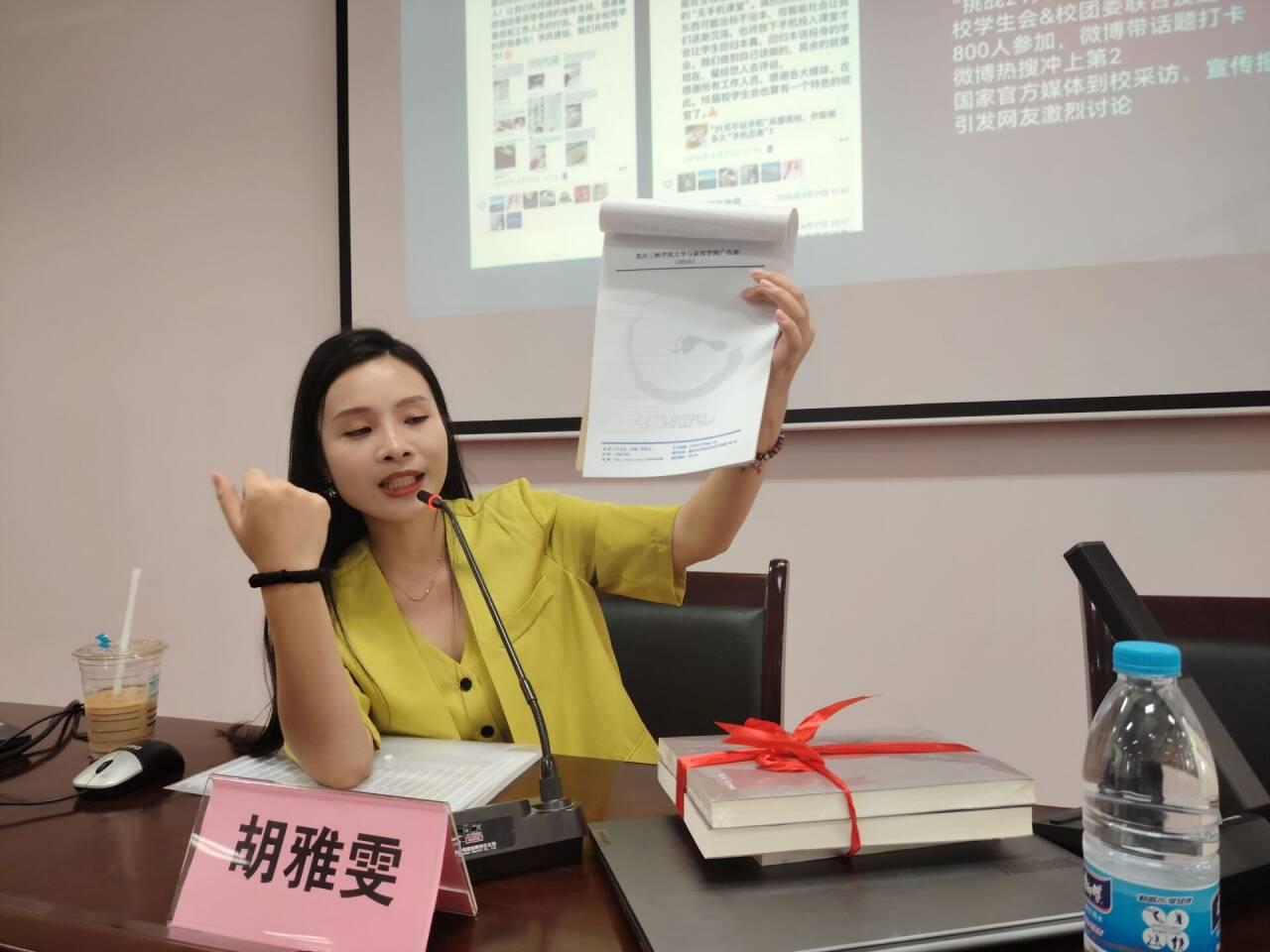 分享会上,胡雅雯首先围绕什么是传媒这一问题,通过回顾自己的求学经历,讲述自己的工作经历,分享自己的创业经验,对同学们的学业规划及未来就业创业提出了七条建议,还就什么是传媒给出她的理解,“每个人都是一个传播的媒介”。胡雅雯指出,同学们在大学学习期间要广泛涉猎,要加强专业学习,还要勇于试错、勤于实践。在就业工作时期,要把握市场需求、切勿自嗨,要紧跟时代、切勿故步自封等。交流答疑环节,现场气氛热烈,新生们纷纷就自己关心的问题向学姐提问。胡雅雯做了耐心细致的解答,解决了同学们的困惑和迷茫。此次分享会,不仅让新生们对传媒行业有了更深入的了解,也让他们对未来的职业规划有了更清晰的认识。