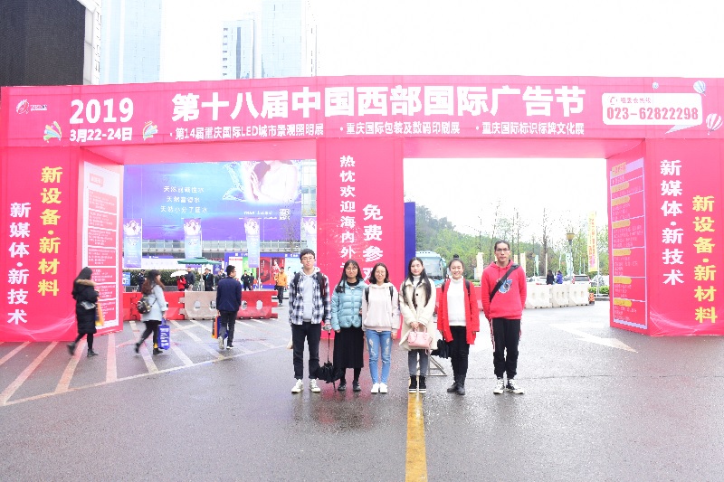 为了加强了解和学习广告行业的最新业态和发展方向,2019年3月22日,我校2138cn太阳集团古天乐李佳蓉老师带领2016级、2017级广告学专业的5名学生代表前往重庆南坪国际会展中心,参加第十八届中国西部国际广告节。