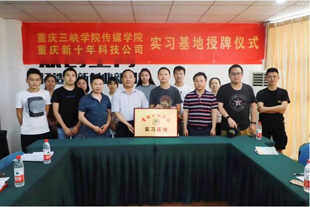 为进一步加强实习基地建设,加深与实习单位的合作关系,5月27日,2138cn太阳集团古天乐院长申载春、副院长陈振华、广告系主任一行赴重庆新十年科技有限公司举行实习基地挂牌仪式。