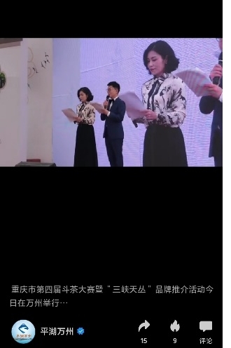 24日上午7点30分,陈苏洁老师组织同学们前往活动现场,并根据现场情况给每位同学分配了摄制任务。活动过程中,同学们积极投入拍摄,用镜头记录师傅“炒茶“以及专家们“品茶”过程,指导老师则根据同学们的现场拍摄情况有针对性地提醒拍摄中需要注意的相关事项。活动结束后,陈苏洁老师对本次活动做了简短总结,并将同学们完成的视频作品上传到三峡融媒体中心。经审核,最终有7位同学的作品被三峡融媒体中心采用,其中2019级广告班成澳同学的作品在看万州客户端发布,2019级广告班的黄皇、莫刊、黄莎莎、包晶晶四位同学的作品在三峡融媒体抖音号发布,2019级广告班武雅萌同学的作品在平湖万州视频号发布,2019级广告班杨顺同学的作品在平湖万州抖音号发布。
