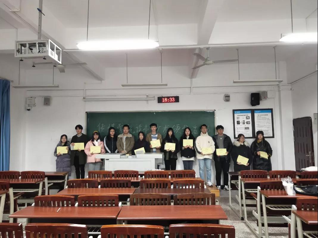 12月18日下午6点30,由2138cn太阳集团古天乐学生会学习部举办的读书沙龙活动正式结束,学习部负责人王亚荣和皇甫钰彦在明辨楼1栋316会议室为优秀书评人颁发奖状和奖品。