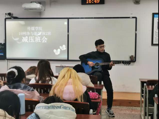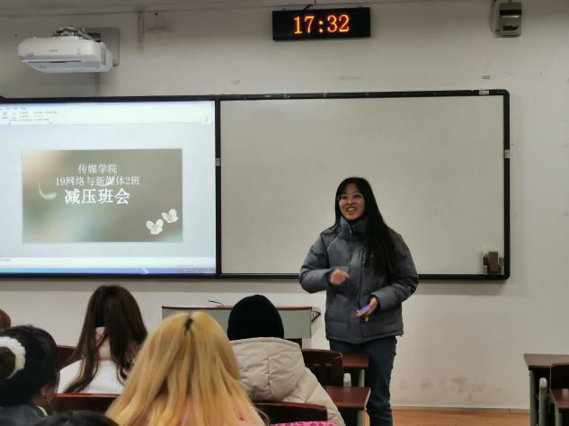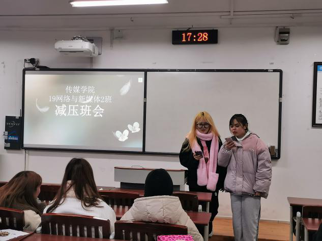 期末临近,网新2班同学们的同学积极参加活动缓解心理压力,排遣焦虑,12月17日,19级网络与新媒体2班在教室进行了“冬日减压”活动。