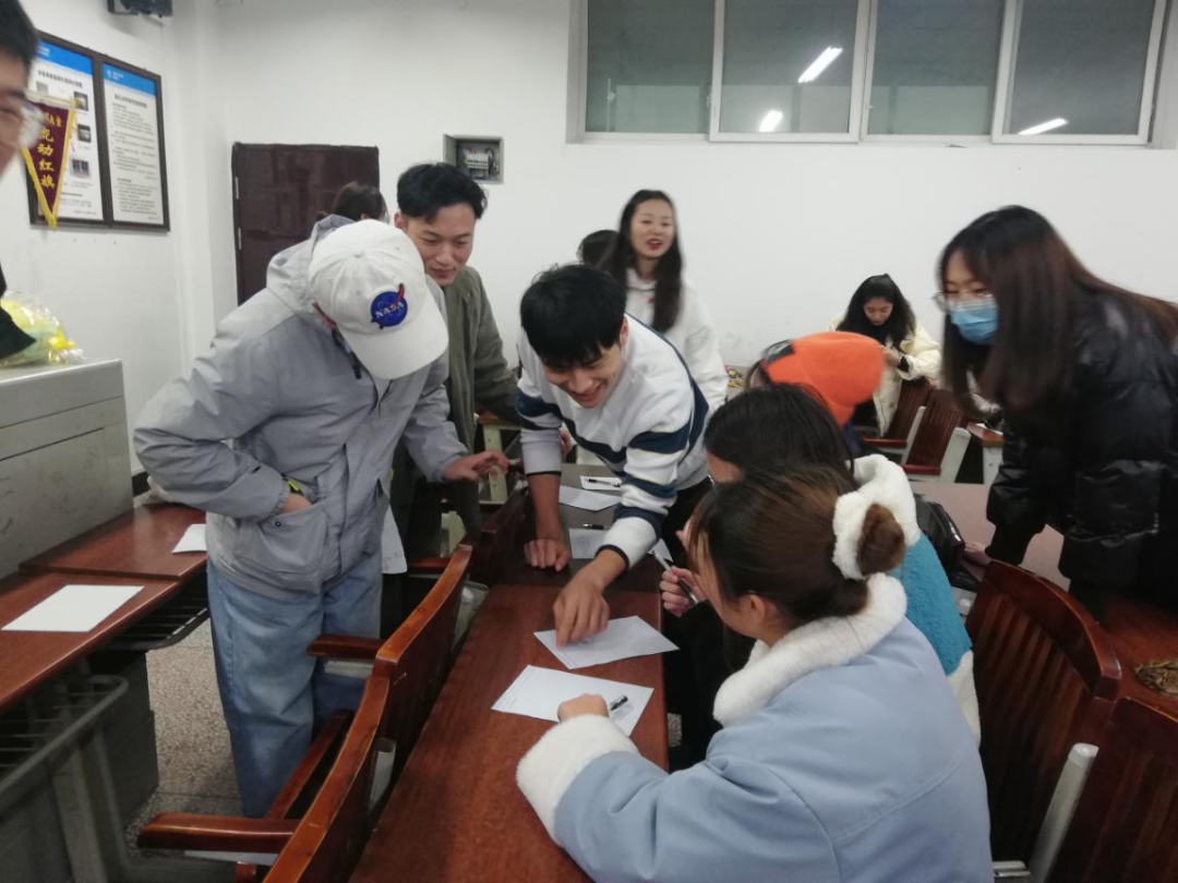 在活动过程中,学生们在班委的精心组织下、紧张有序地积极参赛。“放飞纸飞机”比赛项目中需要学生自己制作纸飞机,以团体或个人形式参加比赛。在空中飞行最远者获本项比赛的第一名。在本项比赛中,着重发挥了学生的动手能力,唤醒了学生的童心,释放了心中的压力。在“你画我猜”比赛中,学生们积极参与,通过肢体表现和默契共同完成了比赛项目。“数字比赛”同样十分激烈,在经历了三轮的比赛后最终选出来了获胜者。活动最终以三项比赛中的总分最高者为第一名。