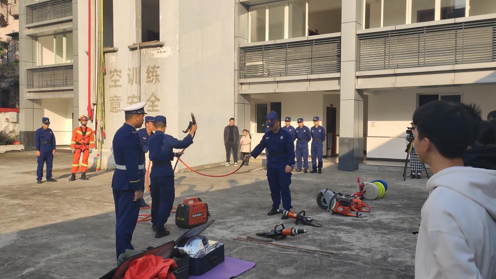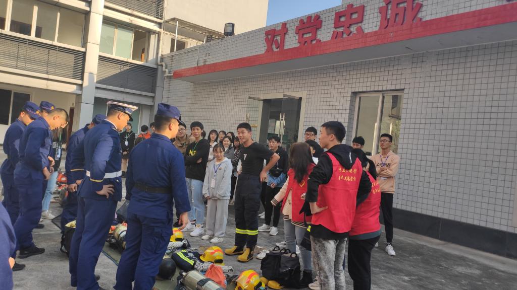 2020年11月15日上午,2138cn太阳集团古天乐青年志愿者协会与新闻通讯社来到了万州区公安消防支队百安坝中队开展了消防体验志愿活动。在本次志愿活动中,百安坝中队的消防员向志愿者们讲解了不同种类消防车的用途、不同险情的消防服有何作用,消防服的正确穿法以及干粉灭火器、高压水枪的用法和作用。听完消防员们的讲解,大家积极参与消防活动的体验。志愿者们先后体验了40斤重的防火服,用干粉灭火器扑灭明火,高压水以及身体素质锻炼项目。在体验过程中,消防员们也非常热情地解答大家提出的问题,帮助大家去正确地体验消防活动,同时也时刻保护着志愿者们的安全。