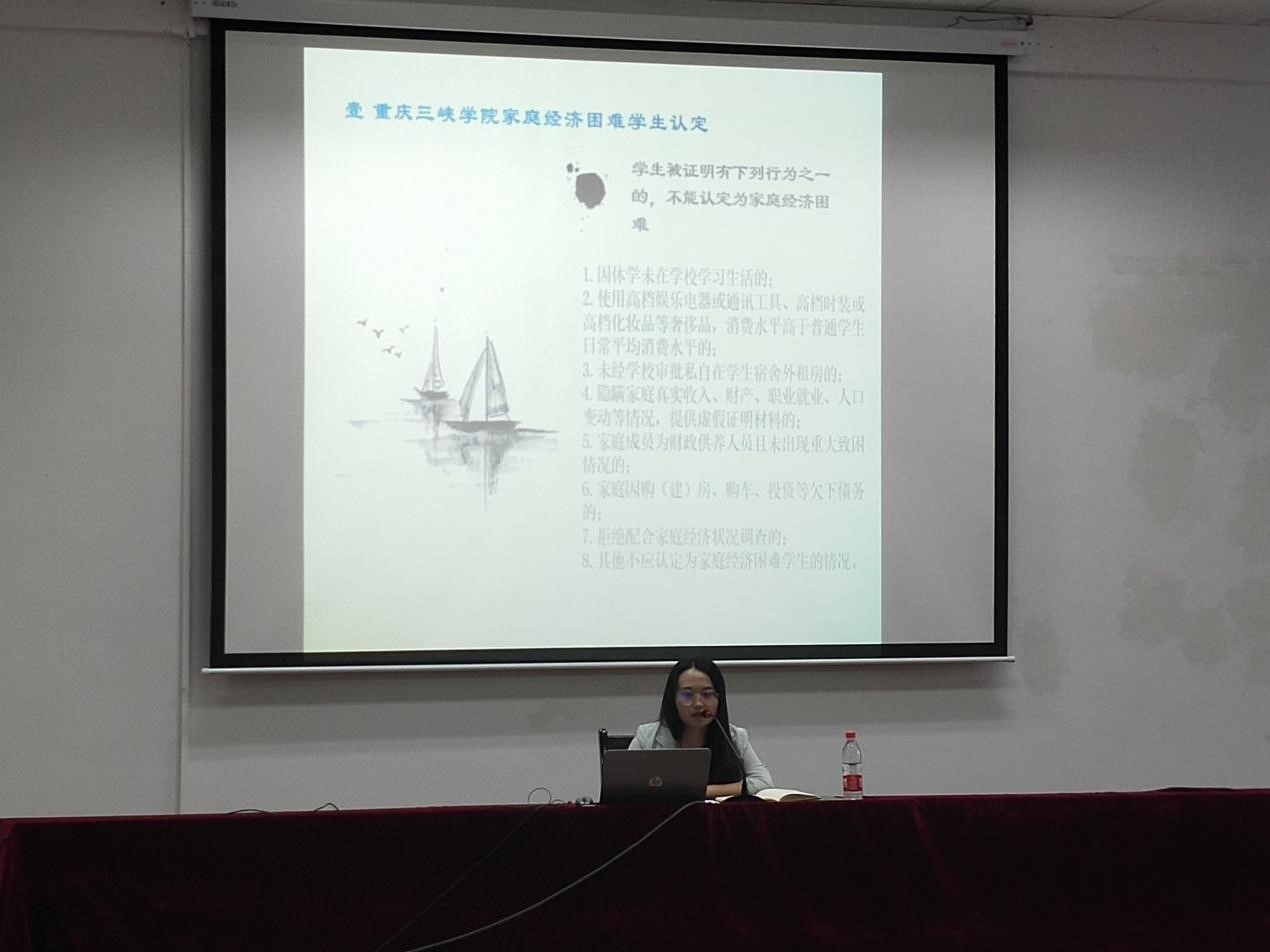 贫困认定非小事,相关概念要区分。文君竹老师首先向新生强调了贫困生建档和建档立卡贫困户这两个概念,并说明两个概念的区别。然后,向新生们讲解了太阳集团2138家庭经济困难学生认定的相关认定程序,并提出同学们之前在贫困生建档中出现的问题,告诫学生以后不能再有类似问题出现。