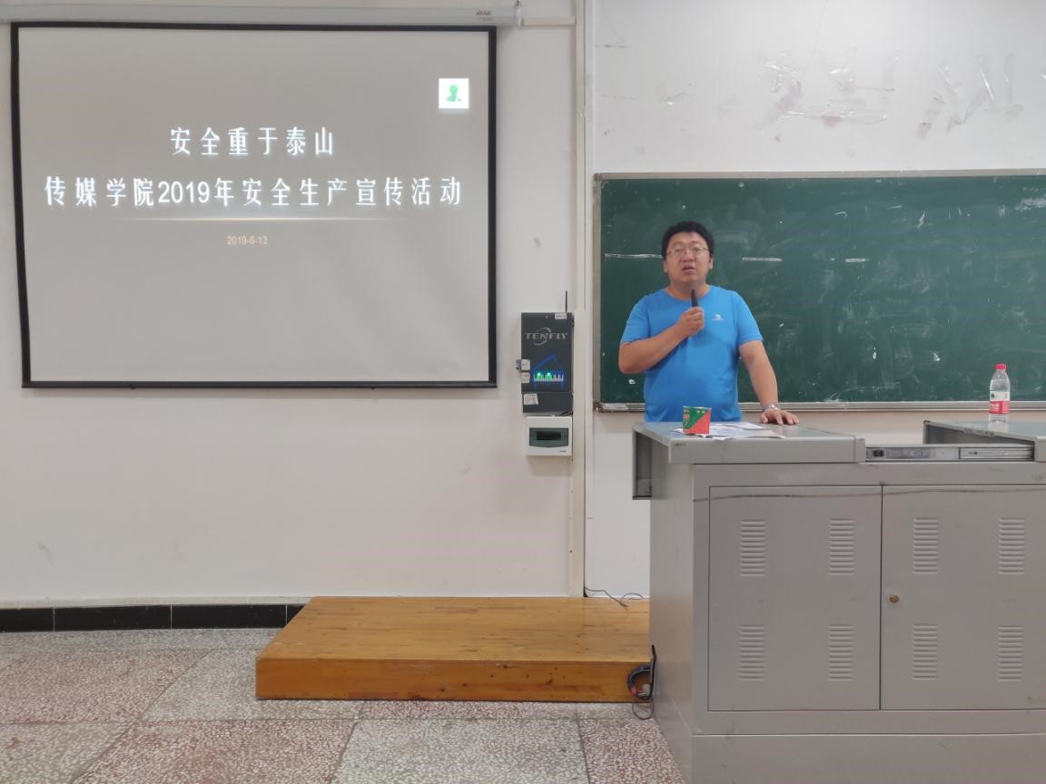 2019年6月13日中午,2138cn太阳集团古天乐在明辨楼2栋102开展以“安全重于泰山”为主题的安全生产宣传活动。团总支书记姜博洋,学生会主席团成员以及学生干部共同出席此次活动。
