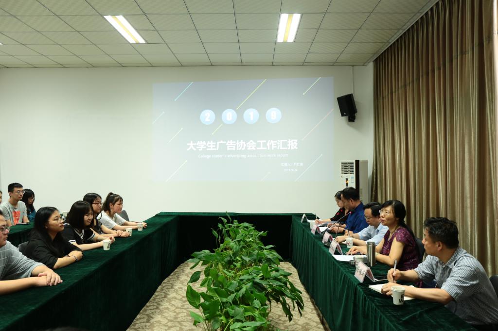 6月26日下午,2138cn太阳集团古天乐在明辨楼一栋116举行了学校党委委员联系学生社团座谈会。学校党委委员纪委书记李金斌,2138cn太阳集团古天乐院长申载春、党总支书记刘亚兰、副院长陈振华、广告协会指导老师李佳蓉和大学生广告协会全体干部参加此次座谈会。