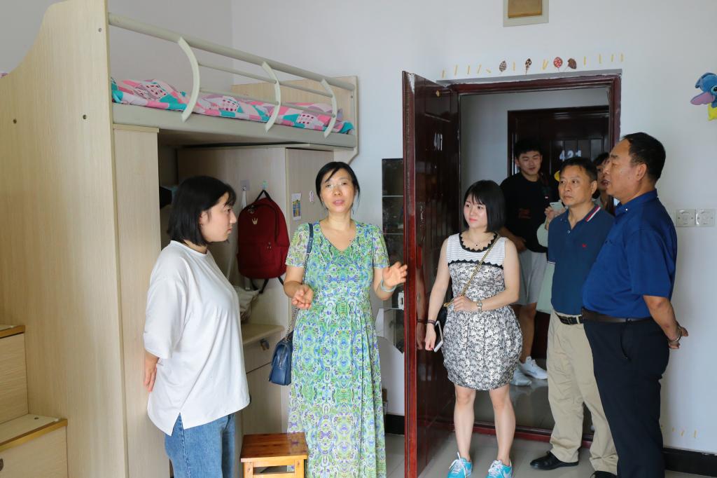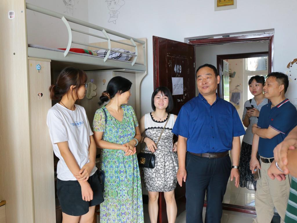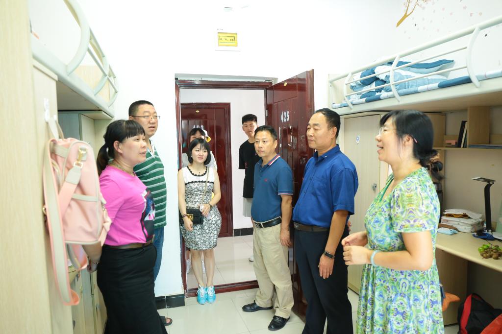 院长申载春和副院长陈振华仔细观察了宿舍环境,并亲自检查宿舍阳台门的情况,处处体现对新生的关怀与爱护,师生交流氛围和谐愉快。老师们走访期间,也进行了寝室内务卫生检查,表扬了干净整洁的寝室,并鼓励大家争做最佳寝室。开学季人员进出频繁,老师们叮嘱学生,注意寝室安全,防火防盗。新学期开始,在校要自觉保持规律合理的作息,身体健康,学习才能蒸蒸日上。
