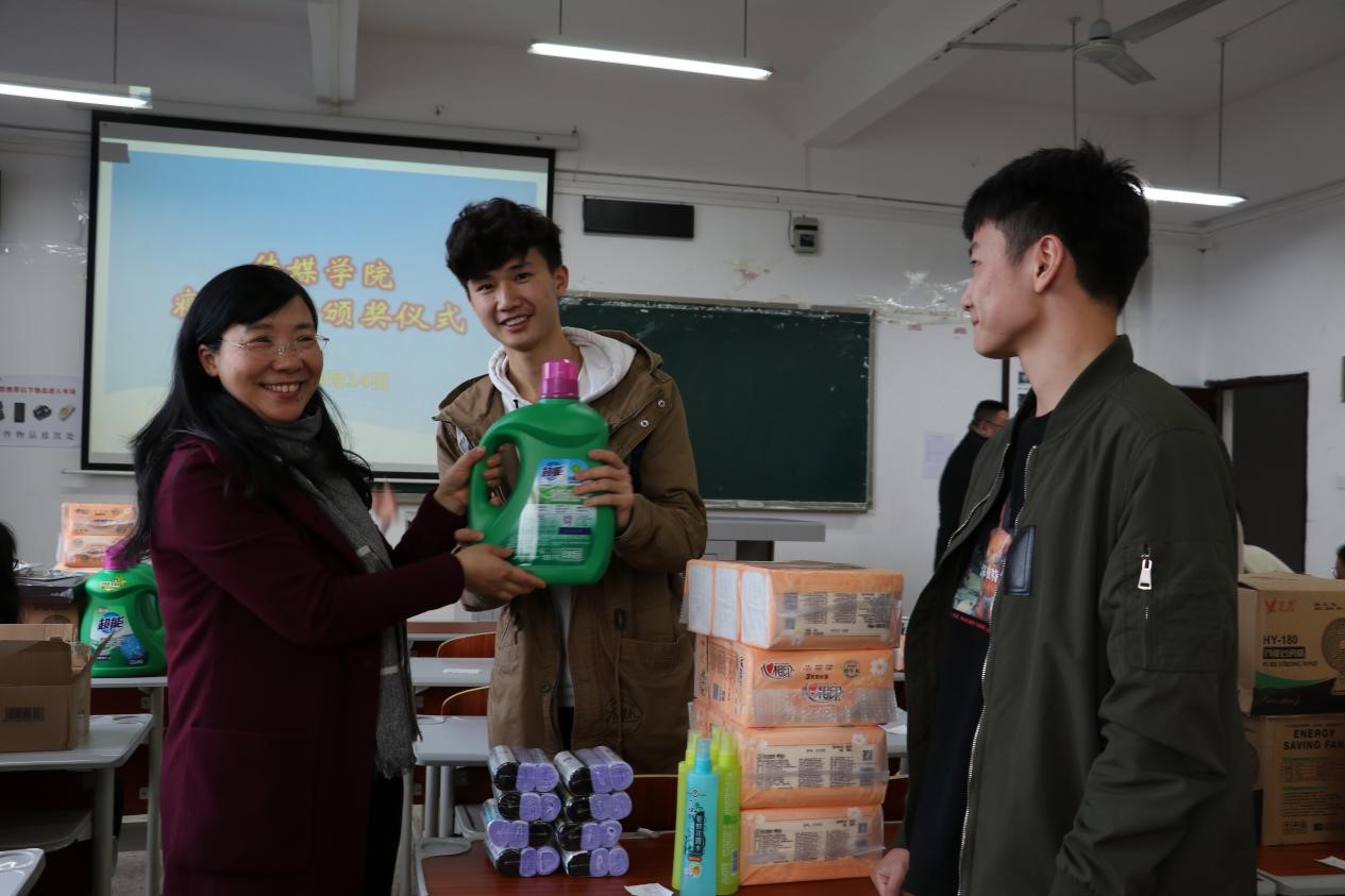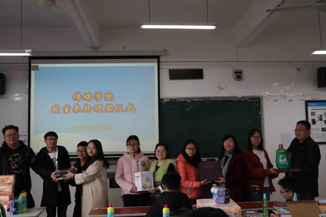 为了进一步加强寝室文明的建设,3月14日下午4点在明辨楼一栋201举行了寝室表扬颁奖仪式,为2018-2019年上学期被表扬寝室颁发奖品,参与此次颁奖的人员除了优秀寝室的代表们还有2138cn太阳集团古天乐党总支书记刘亚兰、学工办主任姜博洋、辅导员肖潇和文君竹老师。