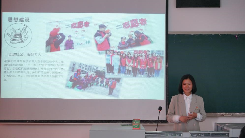 各班班委在现场抽取答辩顺序之后,班级主讲人针对班级学风建设的相关情况依次进行限时五分钟的汇报。参评班级展示各班学风建设的措施与成果,分析学风问题并展望未来。其中,17级广播电视学1班的媒体建设十分出众,在微信公众号、微博的建设上颇有成就;17级网络与新媒体1班的“优秀学风寝室”得到姜老师的肯定,全寝5人均获得奖学金;18级广播电视学2班在问题分析上做到了极致。