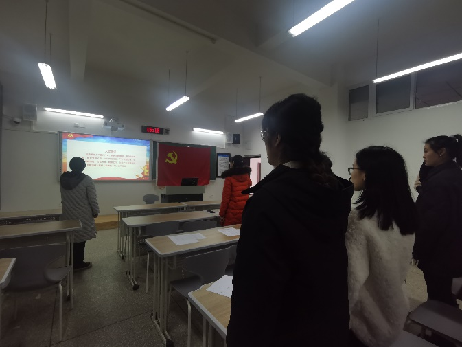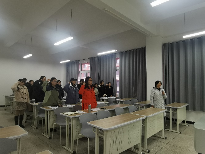 会后,全体党员在党总支书记刘亚兰同志的带领下进行入党宣誓。全体党员重温入党誓词,高亢激昂的声音久久回荡在教室里,彰显着对党的崇高敬意。
