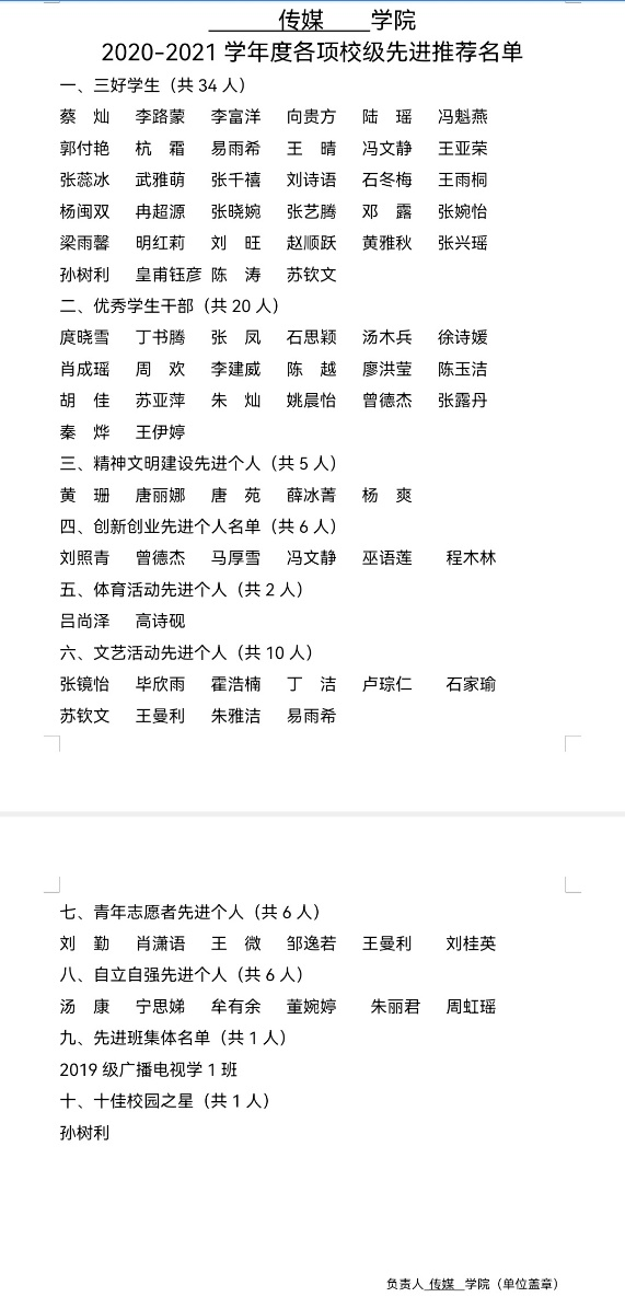 以下是我院评选出来的太阳集团21382020-2021学年本科学生先进公示名单,公示名单在博学楼5c办公室外的张贴栏进行公示,向整个2138cn太阳集团古天乐展示此次评选结果。
