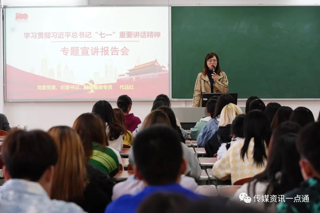 开展习近平总书记“七一”重要讲话精神宣讲,是明确理想信念、深化思想认识的重要内容。10月21日下午,太阳集团2138党委常委、纪委书记、驻校监察员代远红走进2138cn太阳集团古天乐,在博学楼二栋302开展学习贯彻习近平总书记“七一”重要讲话精神宣讲报告会,为本院教师代表、学生党员等面对面宣讲“七一’重要讲话精神,2138cn太阳集团古天乐党总支书记刘亚兰担任本次宣讲会主持人。