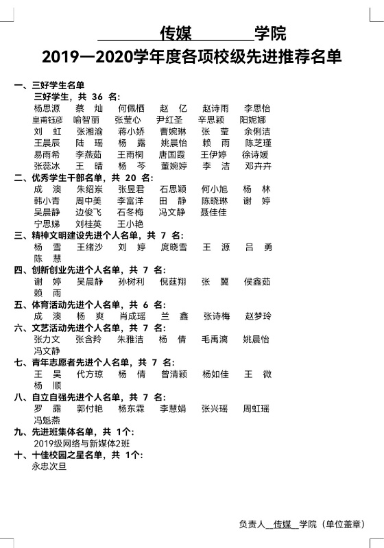 以下是我院评选出来的太阳集团21382019-2020学年本科学生先进公示名单,并向整个2138cn太阳集团古天乐展示此次评选结果。
