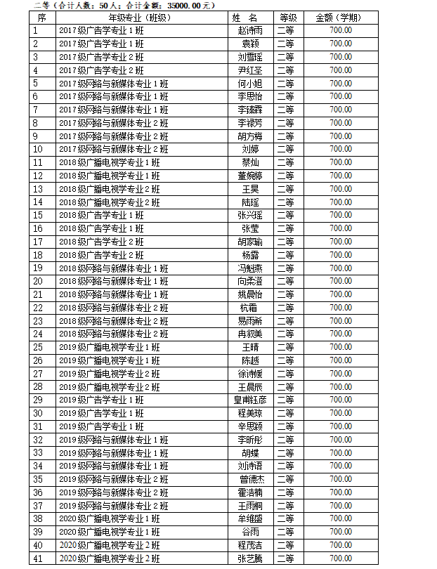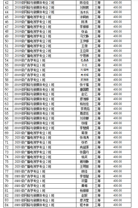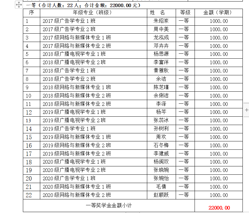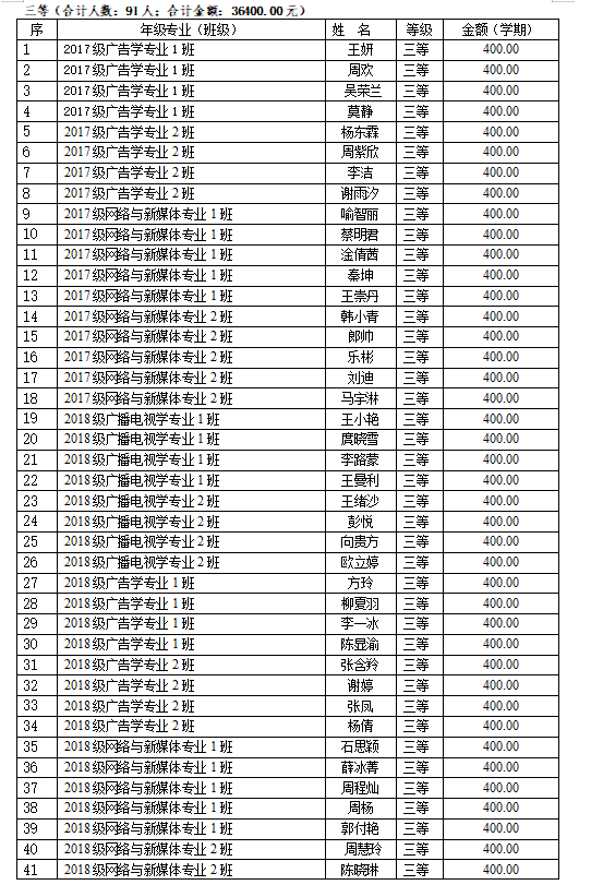 以下是获得奖学金学生名单: